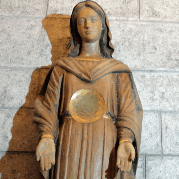 El sentido profundo de esta advocación se refleja en la iconografía de la imagen: una concavidad dorada en el vientre representa el “vacío de sí mismo” que permite ser llenado por Dios. Las manos extendidas en actitud de acogida refuerzan su papel como mediadora maternal en el camino vocacional. Esta representación invita a una actitud de escucha, apertura y confianza ante la llamada divina.